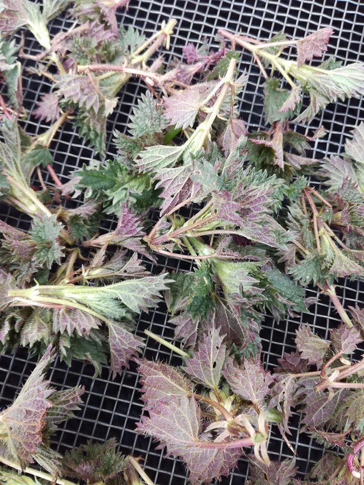 Yrttimummona eilen aloitin sadonkorjuun. Kuivassa aamuauringossa oli hyvä poimia talteen ensimmäiset raudanpunertavat nokkoset ja kippuraiset vuohenputken lehdet.